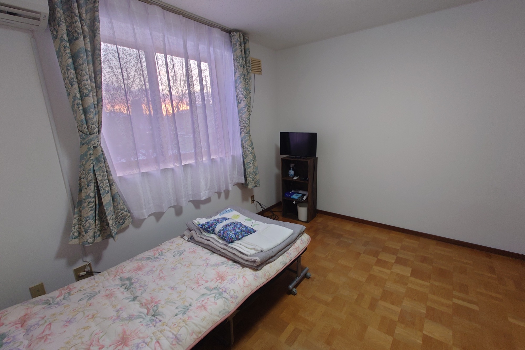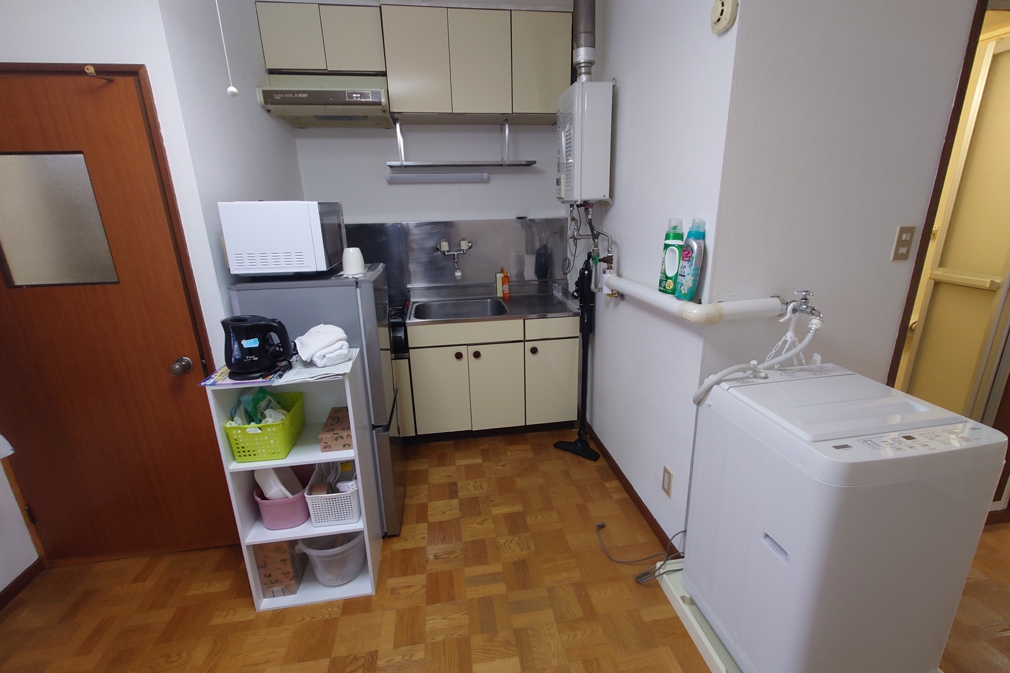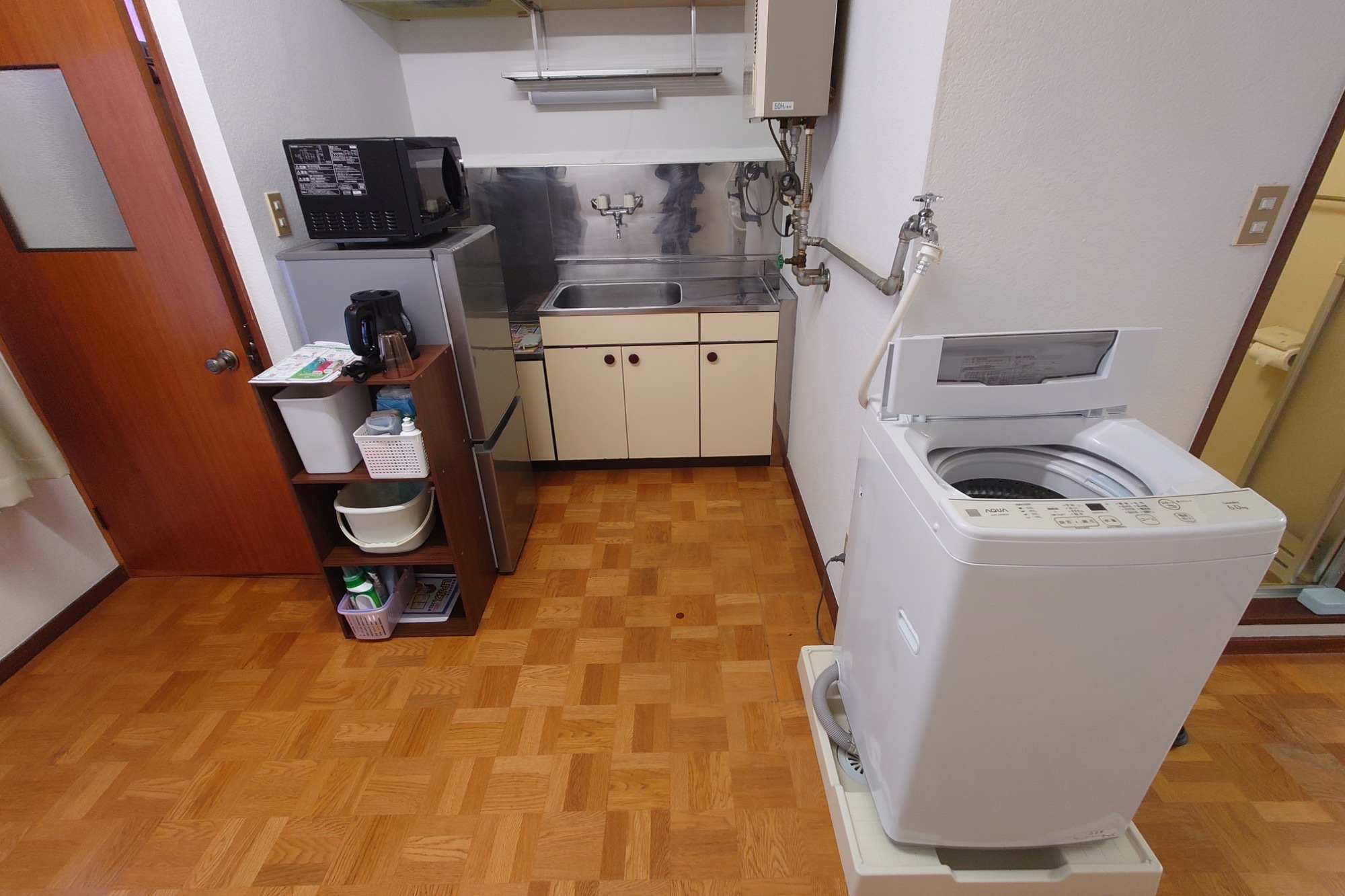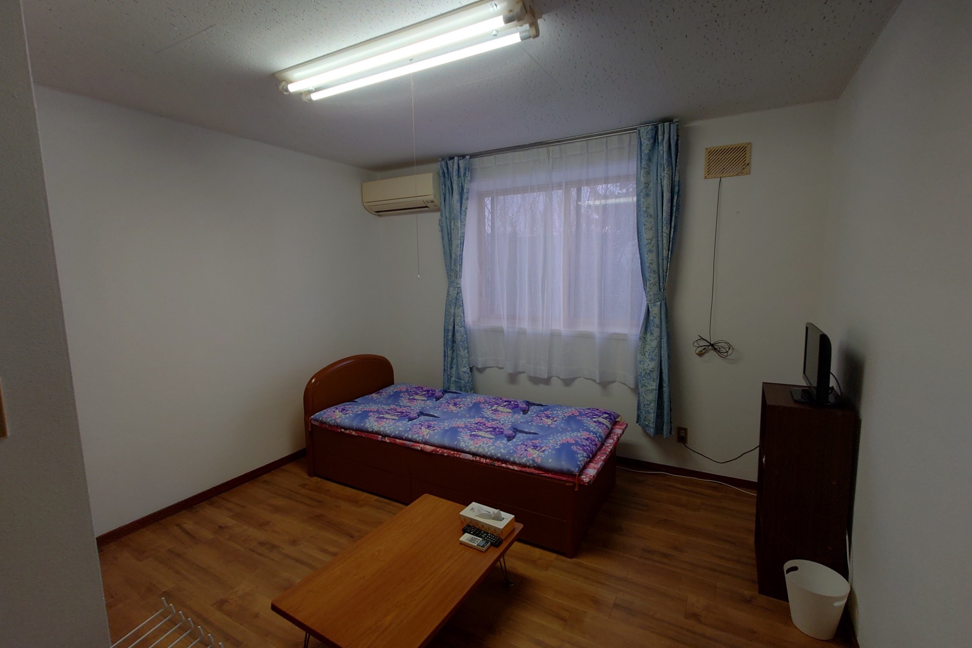 | 設備 | LPGガス、給湯器、シャワー、カーテンW、 インターネット回線可、照明、駐車場完備, 冷房クーラー、ベッド、ストーブ、風呂 テレビ、ベッド、布団、棚、掃除機、洗濯機、湯沸かしポッド、ガスコンロ |
